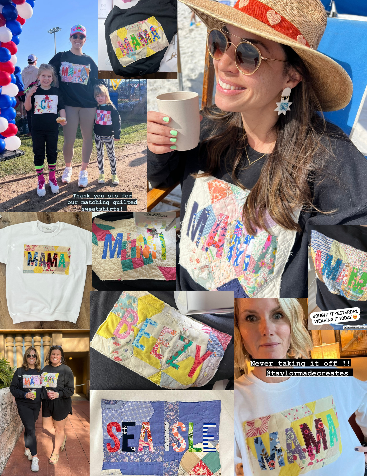 This Custom Quilted Sweatshirt is the perfect combination of comfort and style. Featuring a curated vintage quilt background and handmade quilted letters that spell out any word of your choosing! This colorful and cozy sweatshirt is not only a fun addition to your wardrobe, but also an heirloom item. Get ready to snuggle up in this timeless piece. Sweatshirts are unisex sizing.