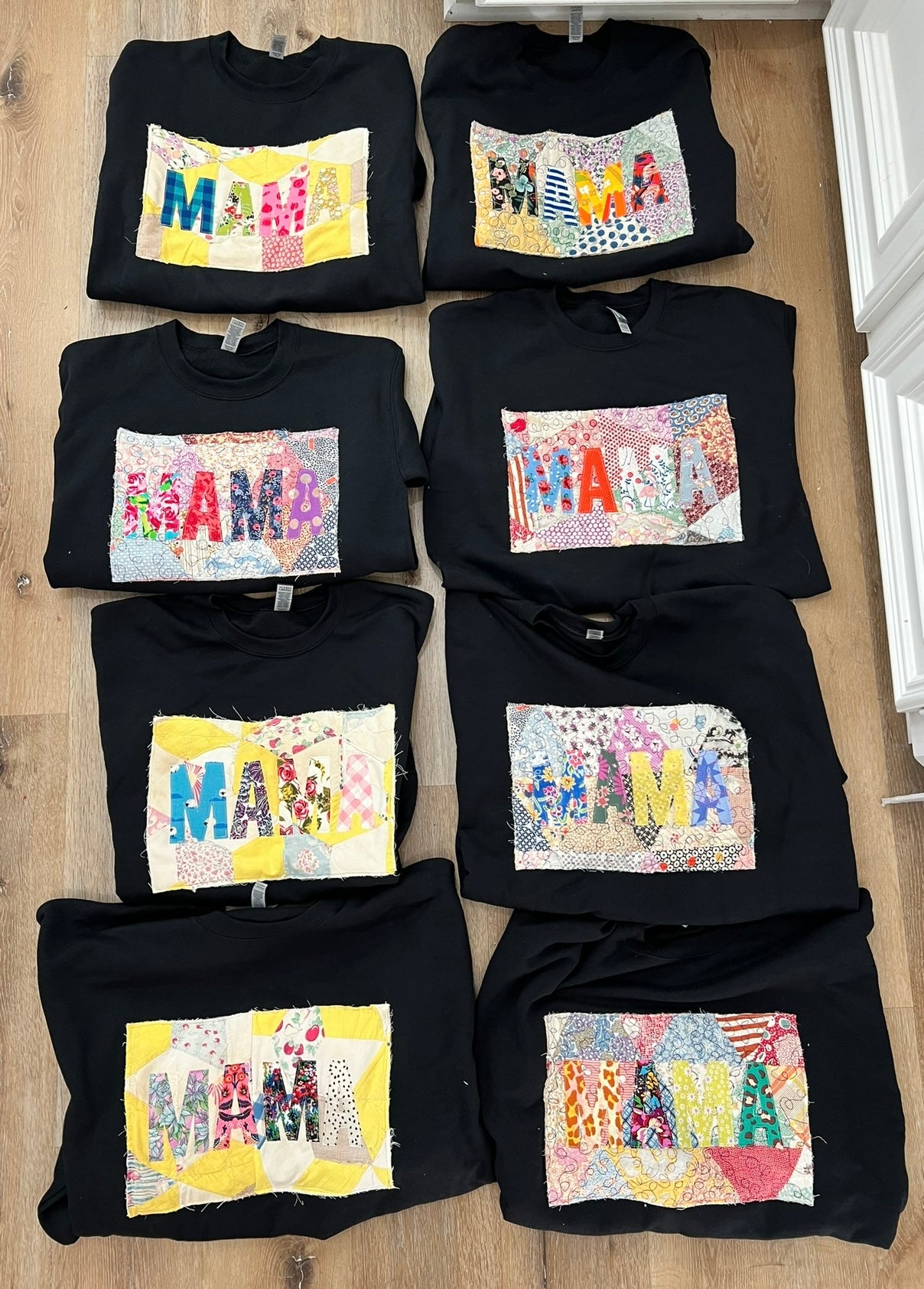 Sweatshirts are made with vintage quilt pieces, some of which are very old so worn spots and frayed edges are completely normal :) Quilted Letters will get softer and more crinkly with each wash.