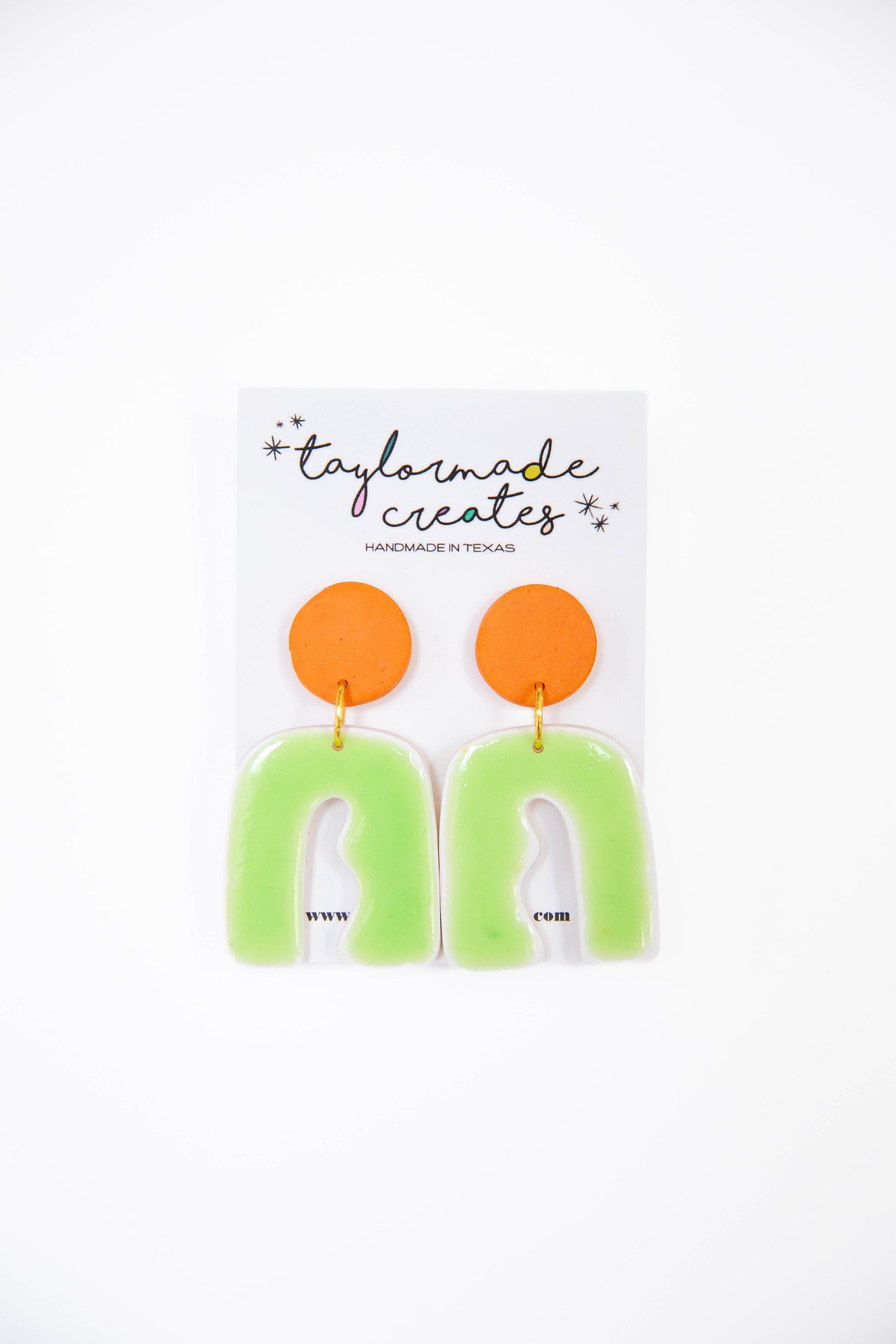 These earrings are super lightweight and super fun to wear. They are made with gold plated stainless steel earring posts and gold filled brass jump rings to connect the geometric earring pieces together.